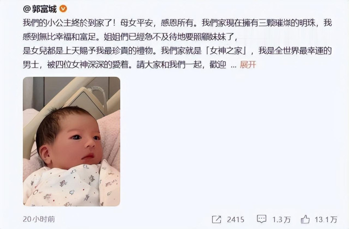 只是很多网友并有关心孩子的颜值,反倒被郭富城官宣的话所吸引。