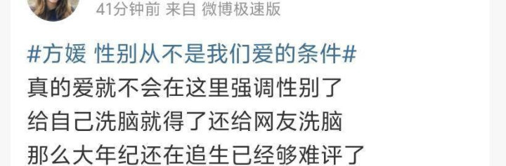 尤其是方媛在文章中写到,性别从来不是他们爱的条件。