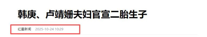 红星新闻2025-10-24《韩庚、卢靖姗夫妇官宣二胎生子》